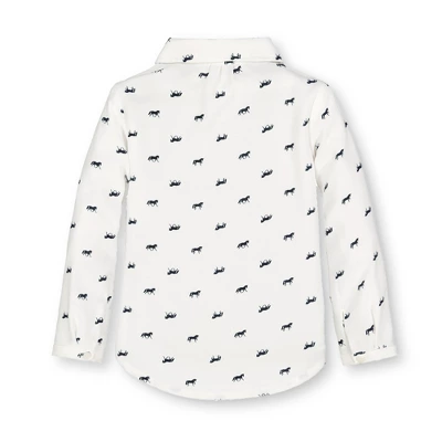 Our sweet button down shirt is crafted in a beautiful swiss dot made from 100% organic cotton for a shirt she’ll be wearing all season long. Features an adorable peter pan collar and real shell buttons at the sleeve cuffs and center front. Top it with one of our pullover sweaters for a complete look!