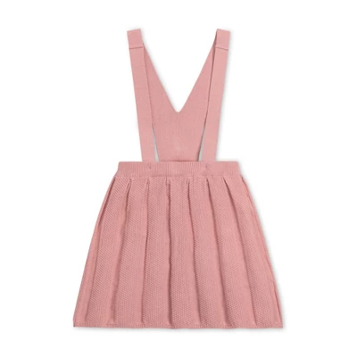Our adorable pleated sweater suspender skirt in soft organic cotton pairs comfort with picture-perfect style. Features pretty allover pleats with a seed stitch texture, an elastic waistband, and an adjustable button front for the perfect fit. Layers perfectly with our beautiful collection of organic cotton knit tops, sweaters, and cable leggings!