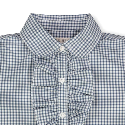 A delicate ruffle front and sweet puff sleeves make this blouse an effortless match for our organic cotton denim or ponte leggings! Features a rounded collar, ruffle details at the center front, and buttons down the center front. Pairs perfectly with our line of beautiful organic cotton sweaters, denim and leggings.