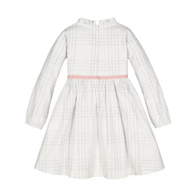 A beautiful silhouette in soft organic cotton brings charm and sophistication to this classic ruffle neck empire waist dress. Features a pretty grosgrain ribbon waistband with bow, and a zip closure down the center back. Fully lined in 100% Organic Cotton. A sweet style she’ll be wearing all fall and winter long.