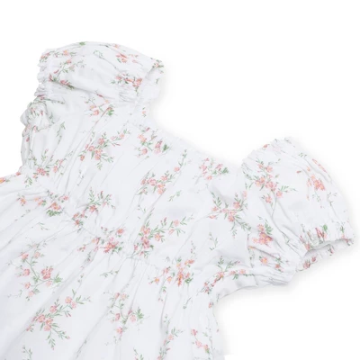 We love our flowy puff sleeve organic cotton top on its own or paired with our adorable shorts, for a pretty and easy head-to-toe look. Features gathered elastic at the neck, sleeves, and bodice for a romantic and feminine fit. Fully lined in 100% organic cotton batiste. A gorgeous look for spring!