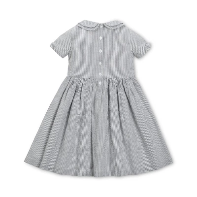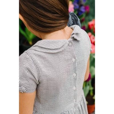 Spring’s iconic and preppy fabric is fashioned into a darling dress with feminine flair. Features organic cotton seersucker, puff sleeves with bow details, a peter pan collar, and pearlized button closure at the center back. Fully lined in 100% organic cotton and ready for all the twirling that spring and summer will bring.