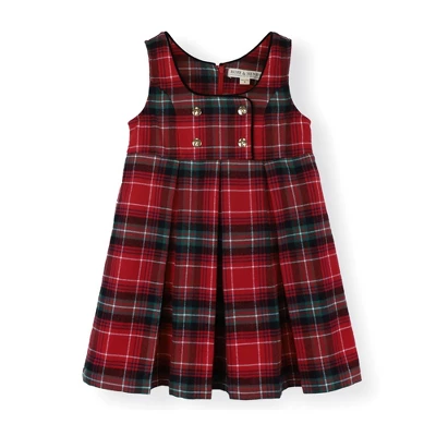 Jumpstart the holiday season with one of our favorite layering pieces! Cut from soft organic cotton, our jumper features a pleated skirt, button front detail, and zipper closure down the center back for easy dressing. Can easily be worn on its own, but looks equally adorable paired with one of our organic cotton knit tops for a little extra style and warmth.