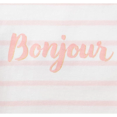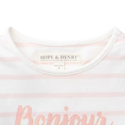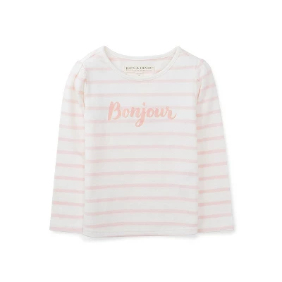 Our sweet and soft long sleeve tee is a comfortable and easy outfitting piece for your sophisticated girl. Our heavyweight cotton jersey is treated to an extra finishing process which resists pilling and gives our fabric a buttery soft hand that has to be felt to be believed! Features gently puffed sleeves and soft water based screen printed graphics for that feminine French touch.