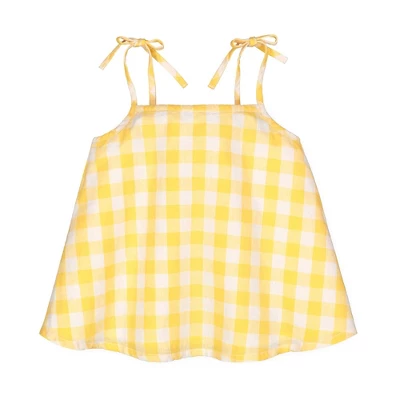 Spring into summer in our feminine sleeveless swing top in a range of colorful prints and patterns. Features a petite ruffle detail along the collar, full lining, and a sweet back neck button closure. Pairs perfectly with our line of organic cotton shorts and skirts for a summer look she’ll be wearing all season long.