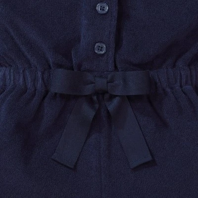 Our cozy organic cotton terry cloth swim cover-up romper is just as cute on the beach as it is in the backyard! Styled to be both fun and functional, it features a ruffled hem, elastic waist, and button front with twill bow tie.