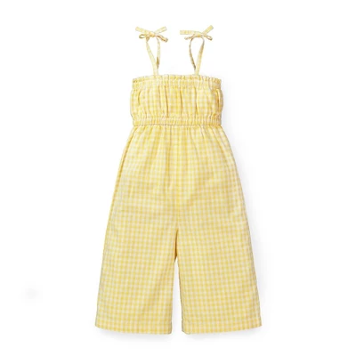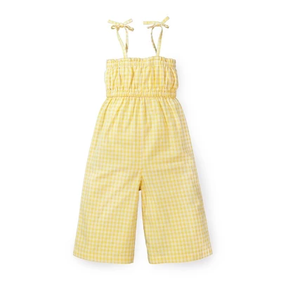 Our sunny swim cover-up jumpsuit is just as cute on the beach as it is in the backyard! Styled to be both fun and functional, it features an elasticized bodice for easy pull on, bow tie details at the shoulder straps, and comfy cropped wide legs.
