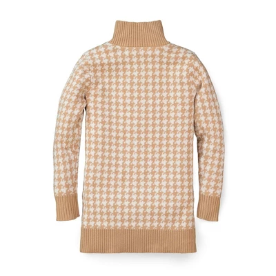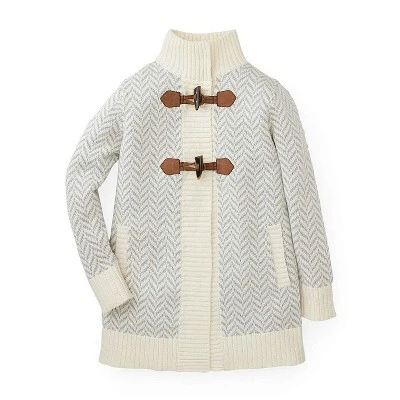 Keep your girl cozy and chic in our long sweater coat in super soft organic cotton. A subtle tan and ivory houndstooth knit pattern adorns this beautiful coat, along with contrasting rib trim and toggle closures made of faux suede and faux horn. A neutral to go with any outfit!
