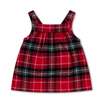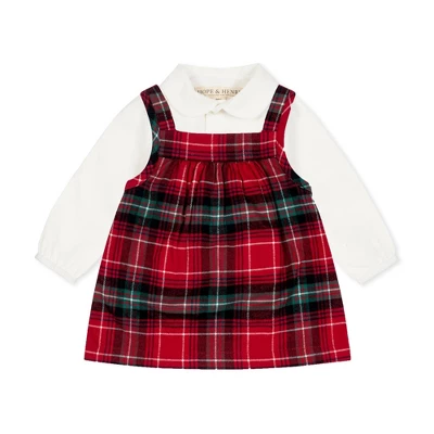 This is the set that will get your little girl constant oohs and ahhs! Our super sweet two piece set features a woven long sleeve bodysuit with a peter pan collar that buttons down the front and also has inseam snaps for easy dressing. Pair it with the feminine jumper dress in our fun and festive plaid with a bow detail at the center back. Perfect for a gift (although if you keep it for yourself, we’ll understand).