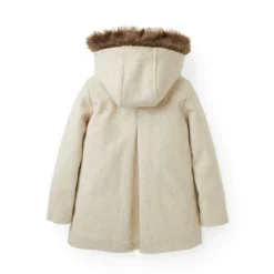 Hope & Henry Girls’ Lightweight Hooded Wool Jacket With Trim, Kids